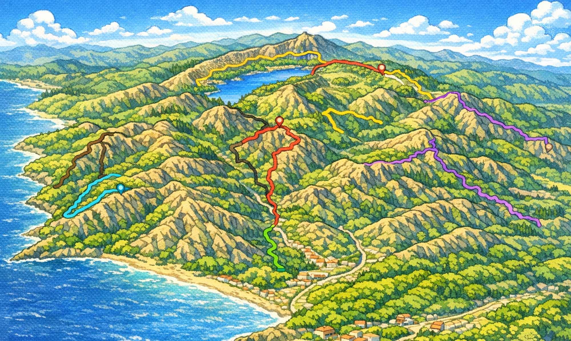 山と山を結ぶと、その途中に神社や祈りの場が現れることがある。